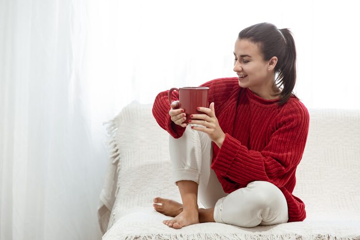 Minuman hangat tanpa kafein atau teh herbal ringan sering dipilih untuk menemani momen santai. Nikmati minuman tersebut di kursi favorit dengan selimut tipis.